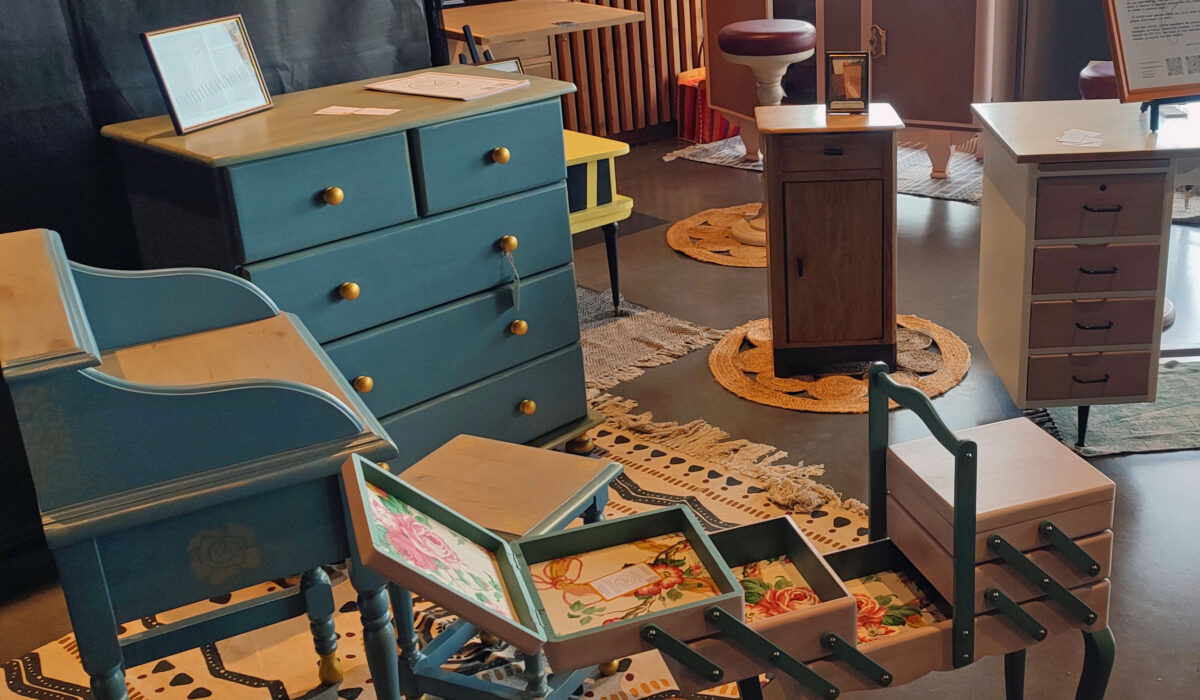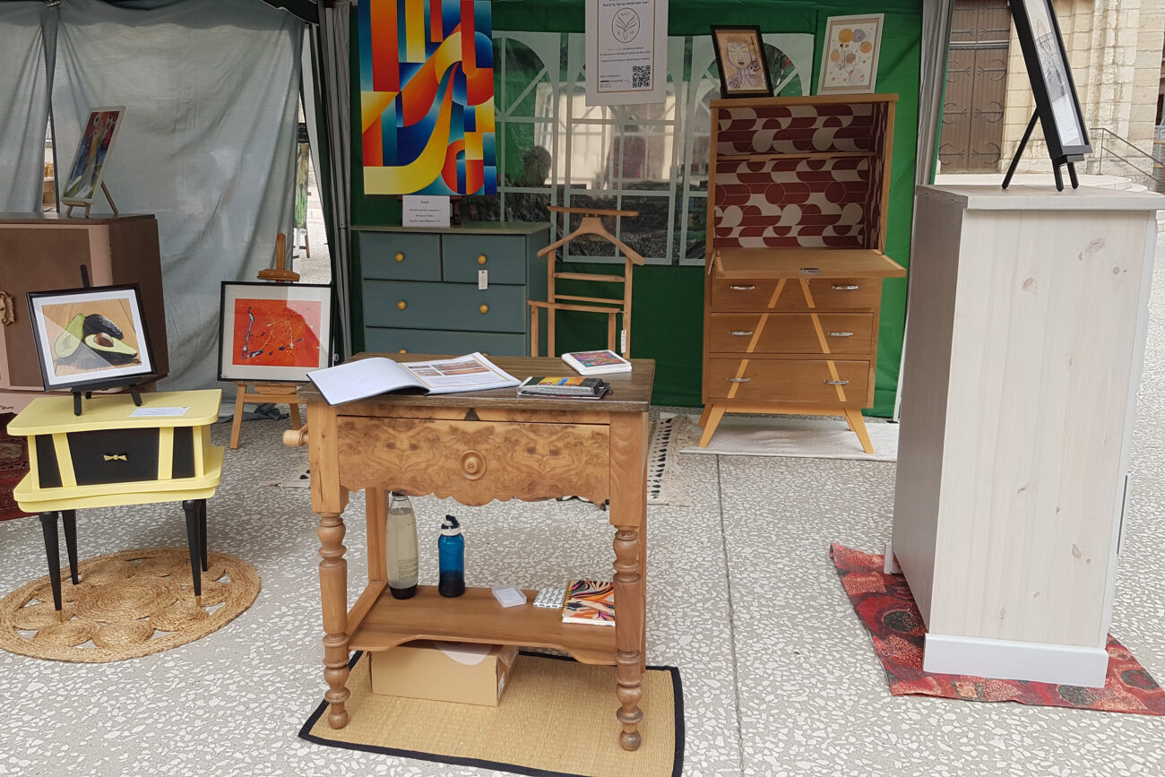 J’ai eu la chance d’exposer des meubles relookés au salon de la récup de Saint Chef. Je suis ravie d’avoir pu répondre aux questions des visiteurs, du partage de ma passion avec eux et de leur avoir donné quelques conseils sur les techniques de relooking de meubles anciens.